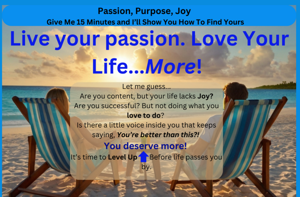 The Love Your Life...MORE! 8 Chapter (play) WorkBook walks you through, step-by-step, fun and easy activities to embark on your path of finding Passion, Purpose, Mission and Reward for your life.